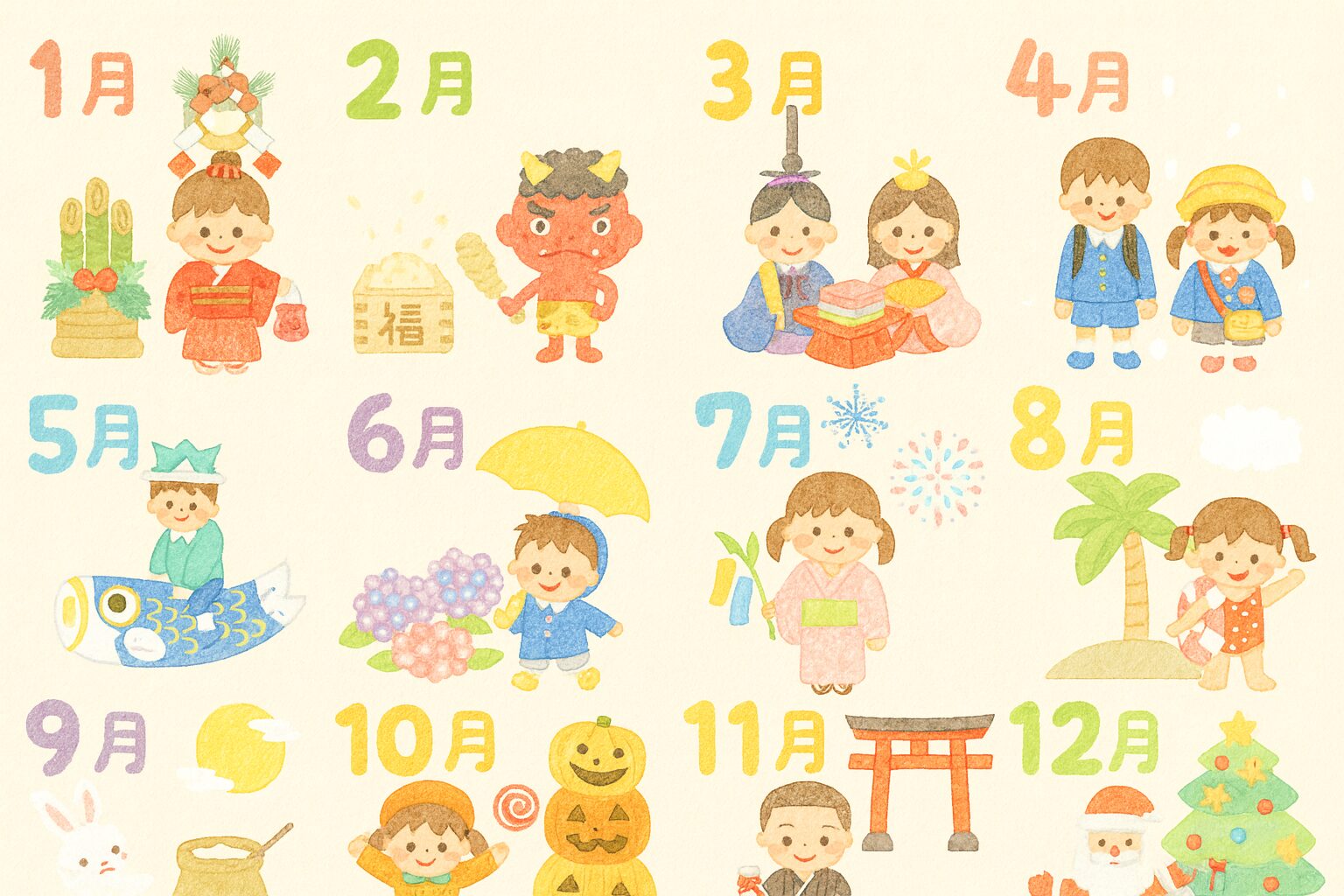 最初に全体の流れを押さえておくと、月ごとの意味や行事のつながりが自然と見えてきます。